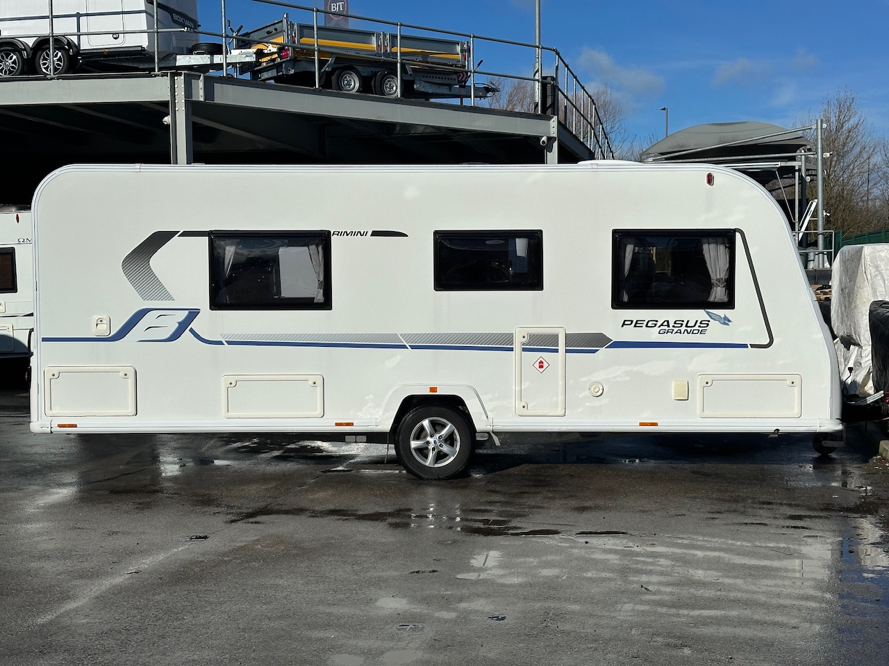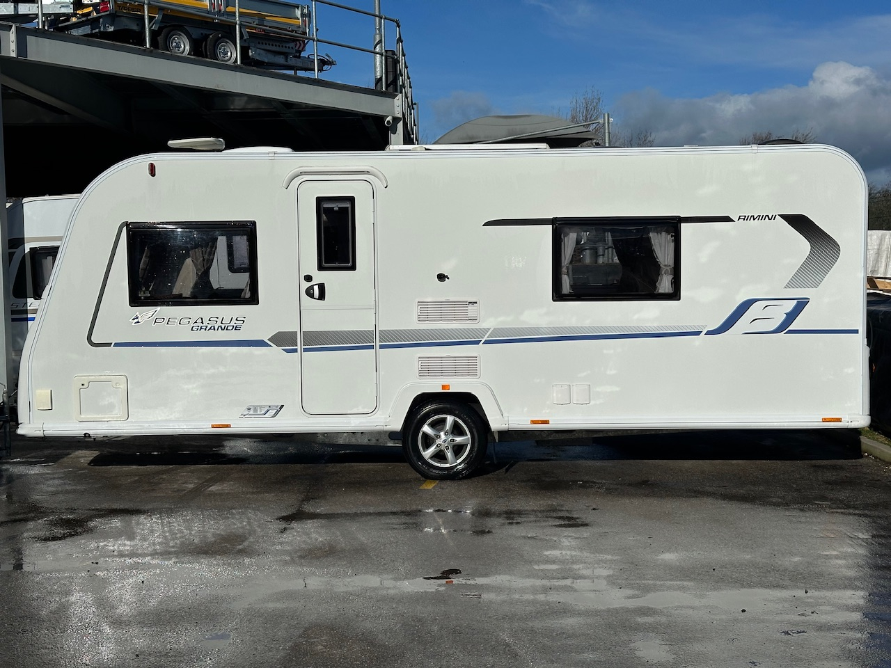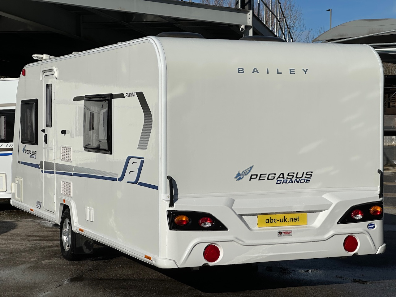 2019 Bailey Pegasus Grande Rimini 4 Berth Touring Caravan, End Washroom With Domestic Style Shower & Electric Flush Cassette Toilet, Twin Single Fixed Beds, Front Dinette Conversion, Truma Heating, 3 Way Fridge, Gas Hob & Oven, Microwave, Hot Water, Solar Panel, External Gas BBQ Connection, Window Blinds And Fly Screens, Alloy Wheels, ATC Alko Trailer Control, Under Bed Access Locker Doors And Much More.Please Call.