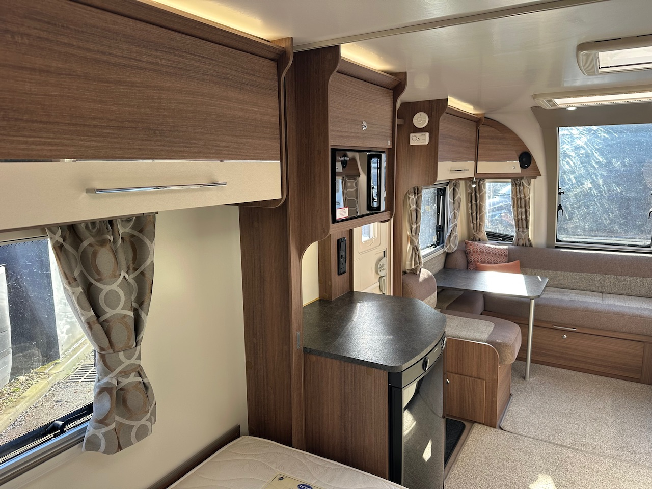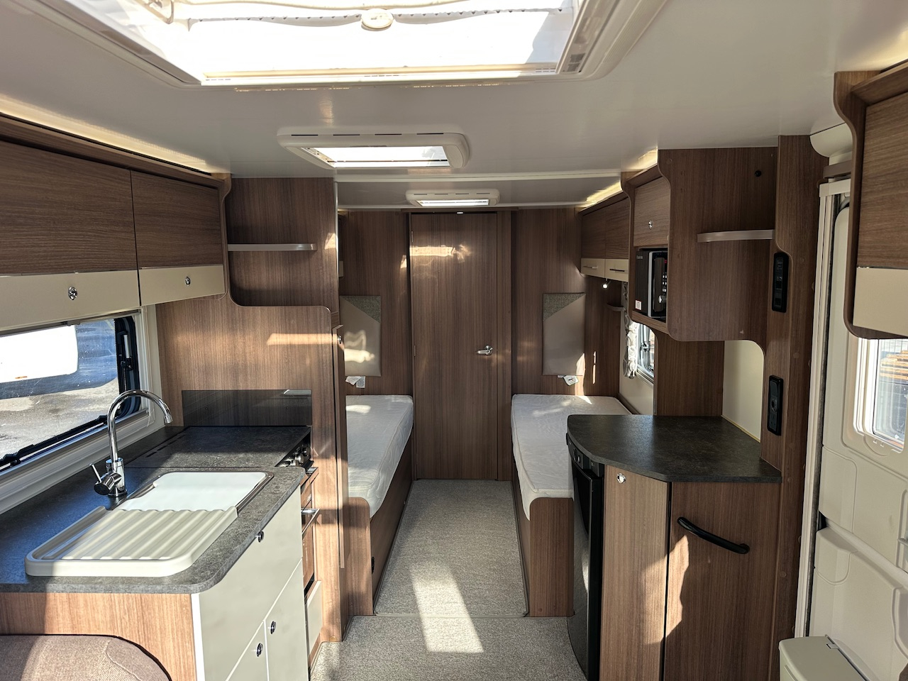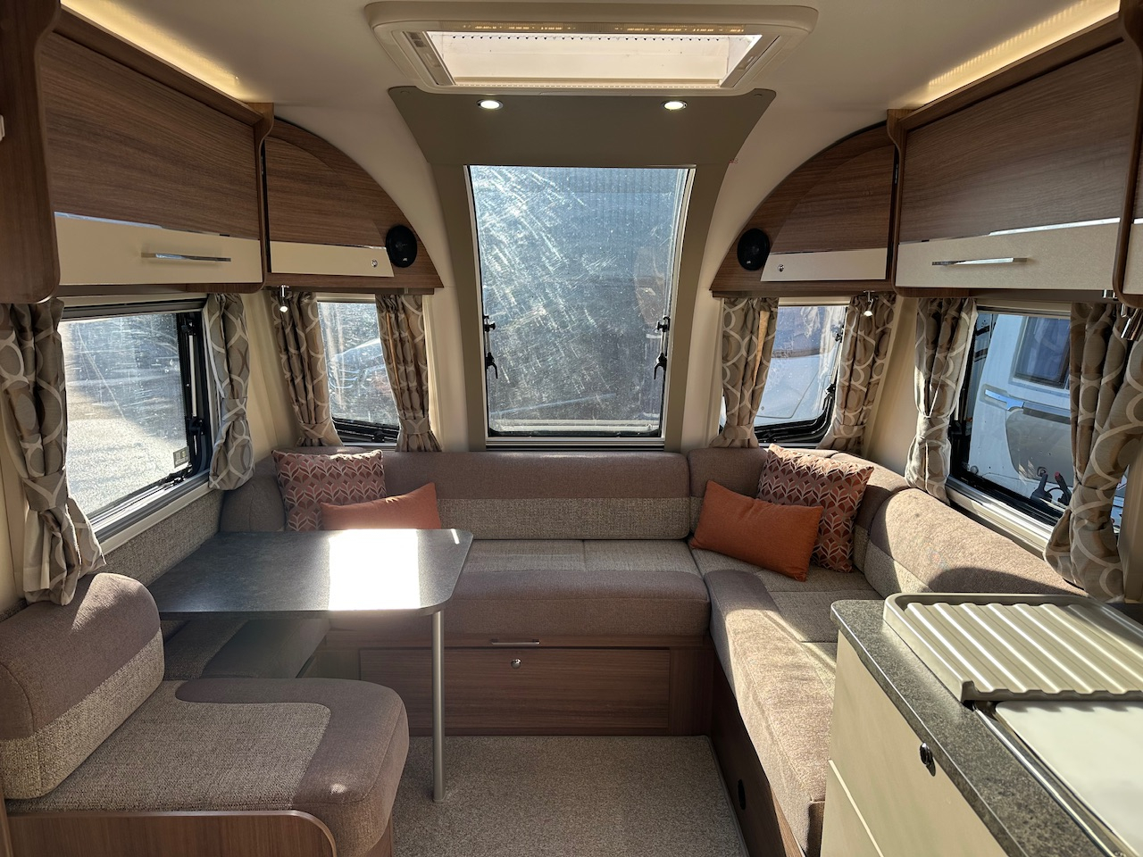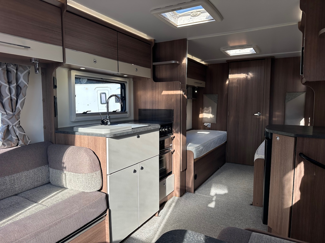 2019 Bailey Pegasus Grande Rimini 4 Berth Touring Caravan, End Washroom With Domestic Style Shower & Electric Flush Cassette Toilet, Twin Single Fixed Beds, Front Dinette Conversion, Truma Heating, 3 Way Fridge, Gas Hob & Oven, Microwave, Hot Water, Solar Panel, External Gas BBQ Connection, Window Blinds And Fly Screens, Alloy Wheels, ATC Alko Trailer Control, Under Bed Access Locker Doors And Much More.Please Call.