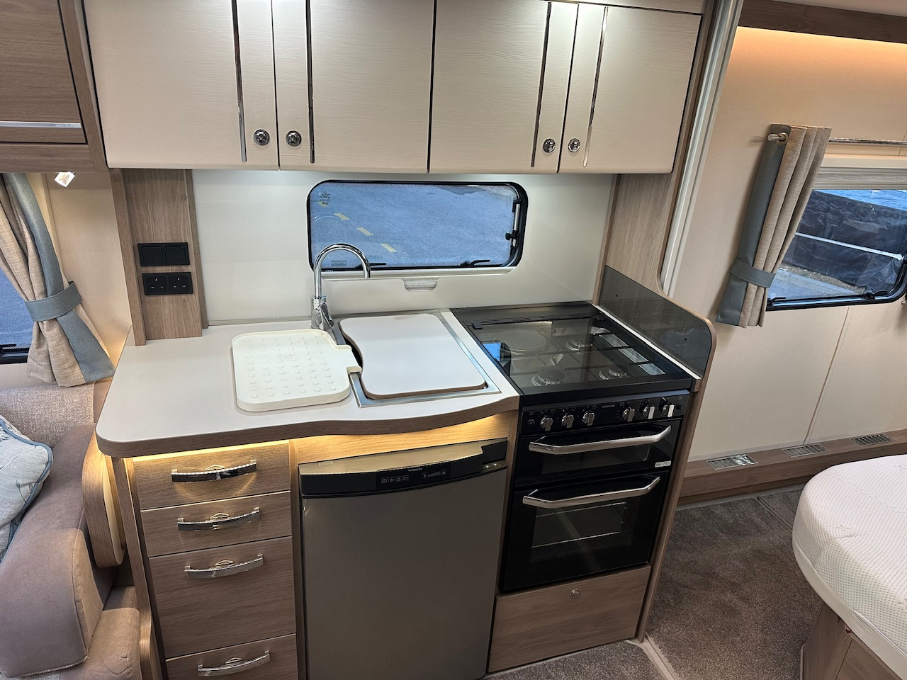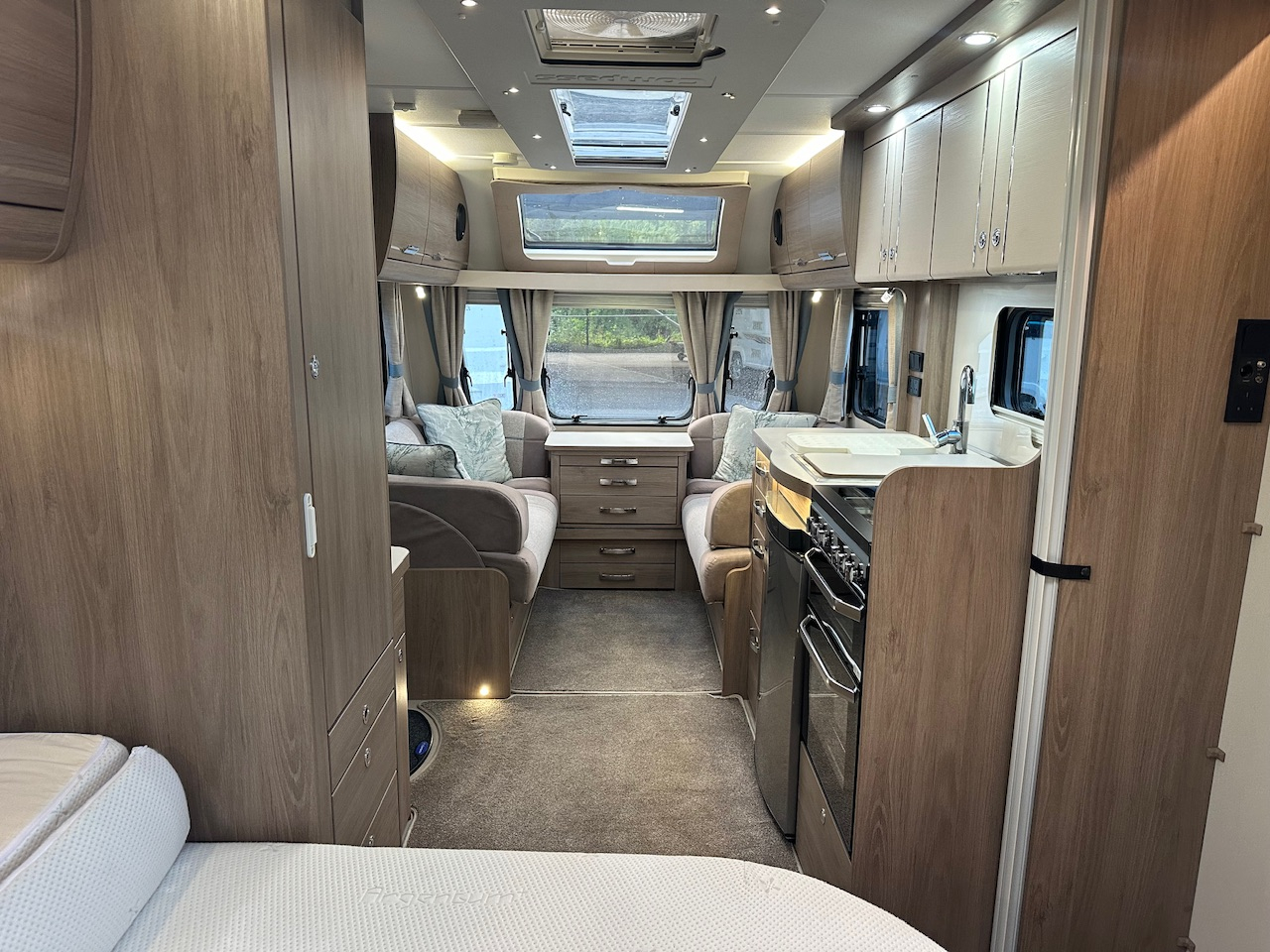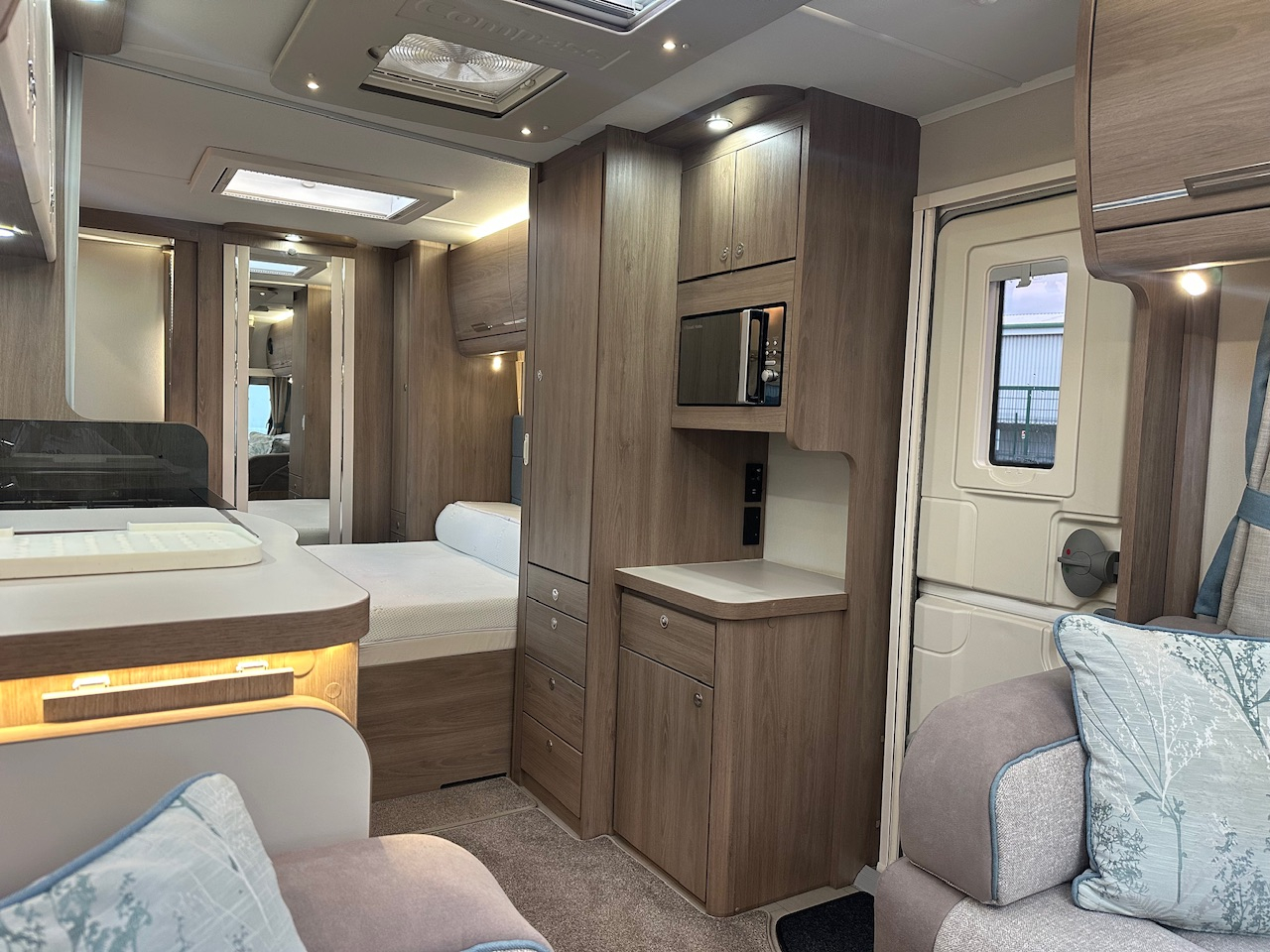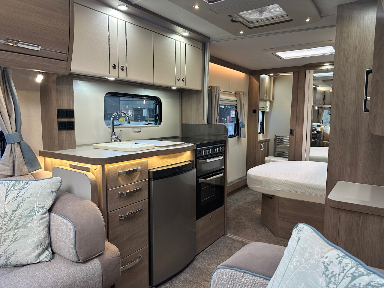 2019 Compass Camino 554 4 Berth Touring Caravan, Fixed Transverse Island Bed, End Washroom, Alde Heating, Solar Panel, Large Shower, Radio, Gas Oven & Hob, Fridge, Microwave, Omnivent, ATC Alko Trailer Control, Alloys And Lots More. Very Clean And Tidy Example. Viewing Highly Recommended. Please Call,