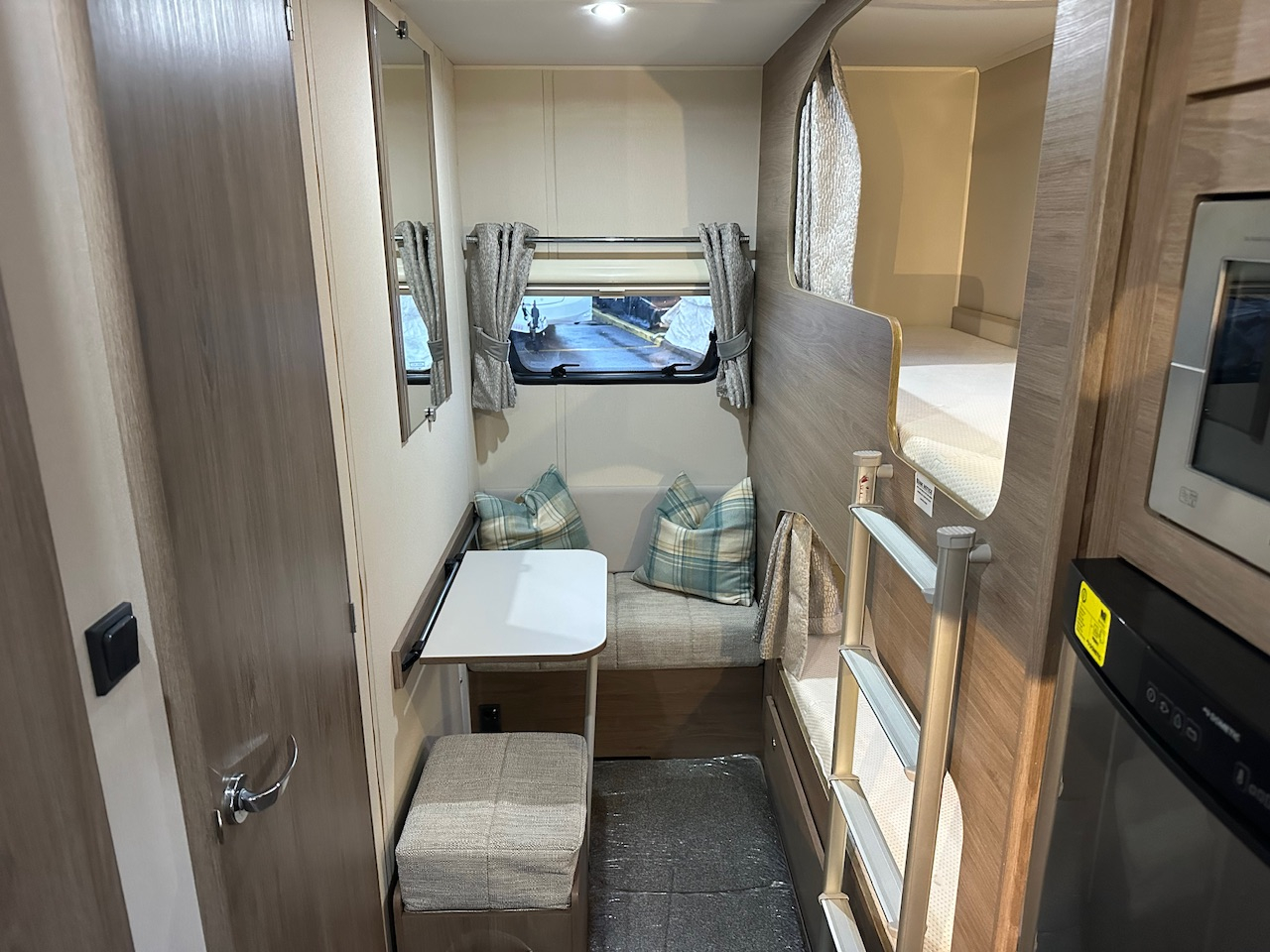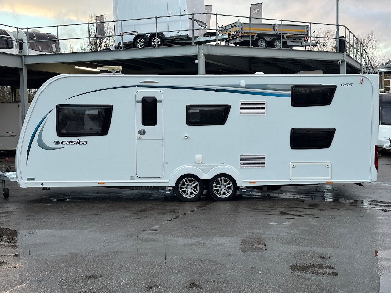 2018 Compass Casita 866 6 Berth Touring Caravan, Fixed Bunks With Dinette Conversion & Side Dinette That Becomes A Double Bed, End Washroom With Domestic Style Shower & Electric Flush Cassette Toilet, Large 3 Way Fridge, Gas Hob & Oven, Whale Hot Water & Heating, Microwave, Quad Motor Movers, ATC ALKO Trailer Control, Alloy Wheels With Wheel & Hitch Locks And Much More. Please Call
