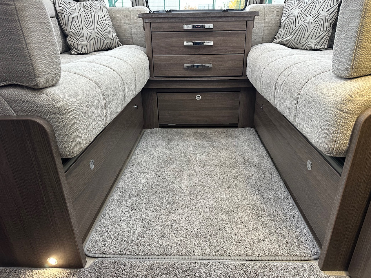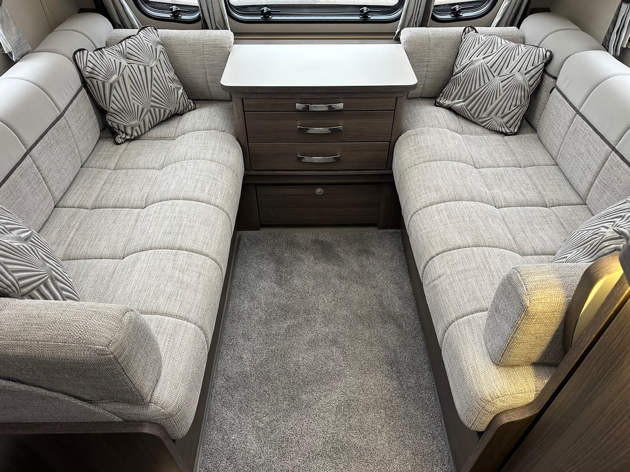 2019 Elddis Affinity 574 4 Berth Touring Caravan, End Bedroom With Twin Single Beds, Walk Through Washroom With Domestic Style Shower & Electric Flush Cassette Toilet, Alde Wet Central Heating, 3 Way Fridge, Gas Hob & Oven, Microwave, Hot Water, Solar Panel, External Gas BBQ Connection, Window Blinds And Fly Screens, Alloy Wheels, ATC Alko Trailer Control, Under Bed Access Locker Door And Much More. Please Call.