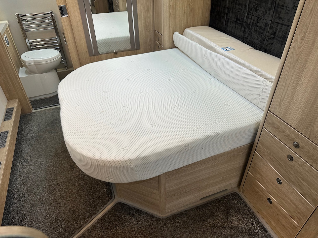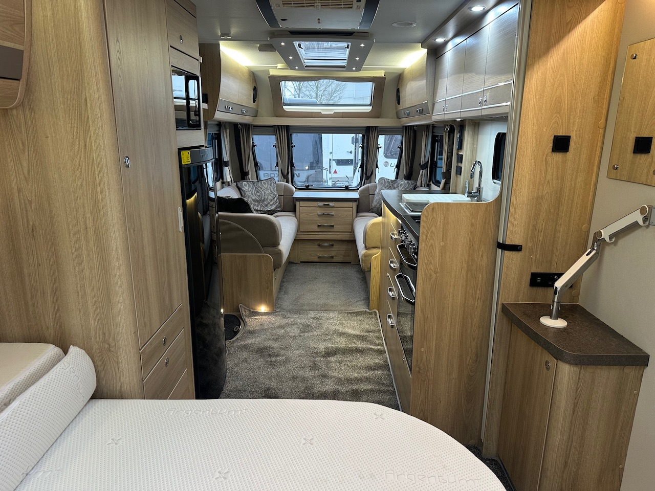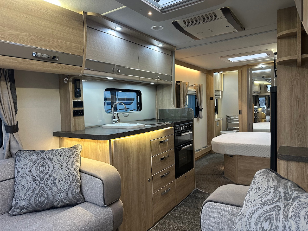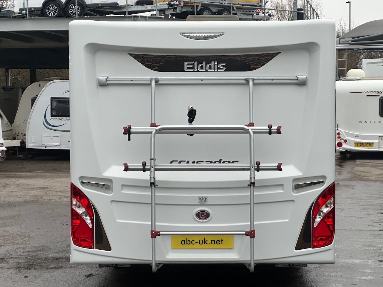 2019 Elddis Crusader Storm 4 Berth Double Axle Touring Caravan, Transverse Island Bed, End Washroom, Truma Air Conditioning, Alde Heating, Quad Motor Movers, Bike Rack Fitted, ATC, Radio, Gas Oven & Hob, Large Fridge, Microwave And Lots More. Very Clean And Tidy Example. Viewing Highly Recommended.