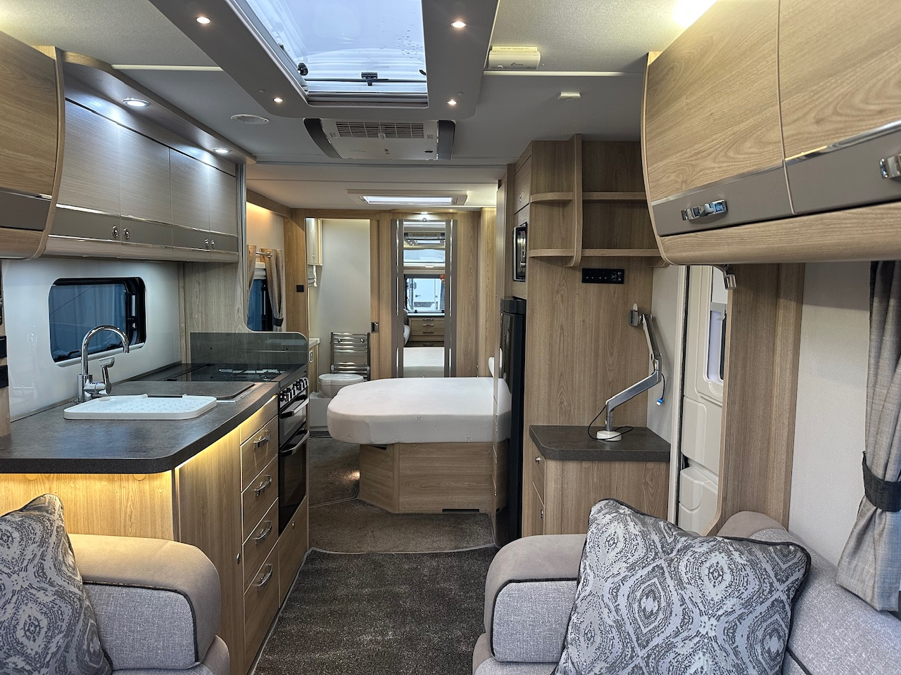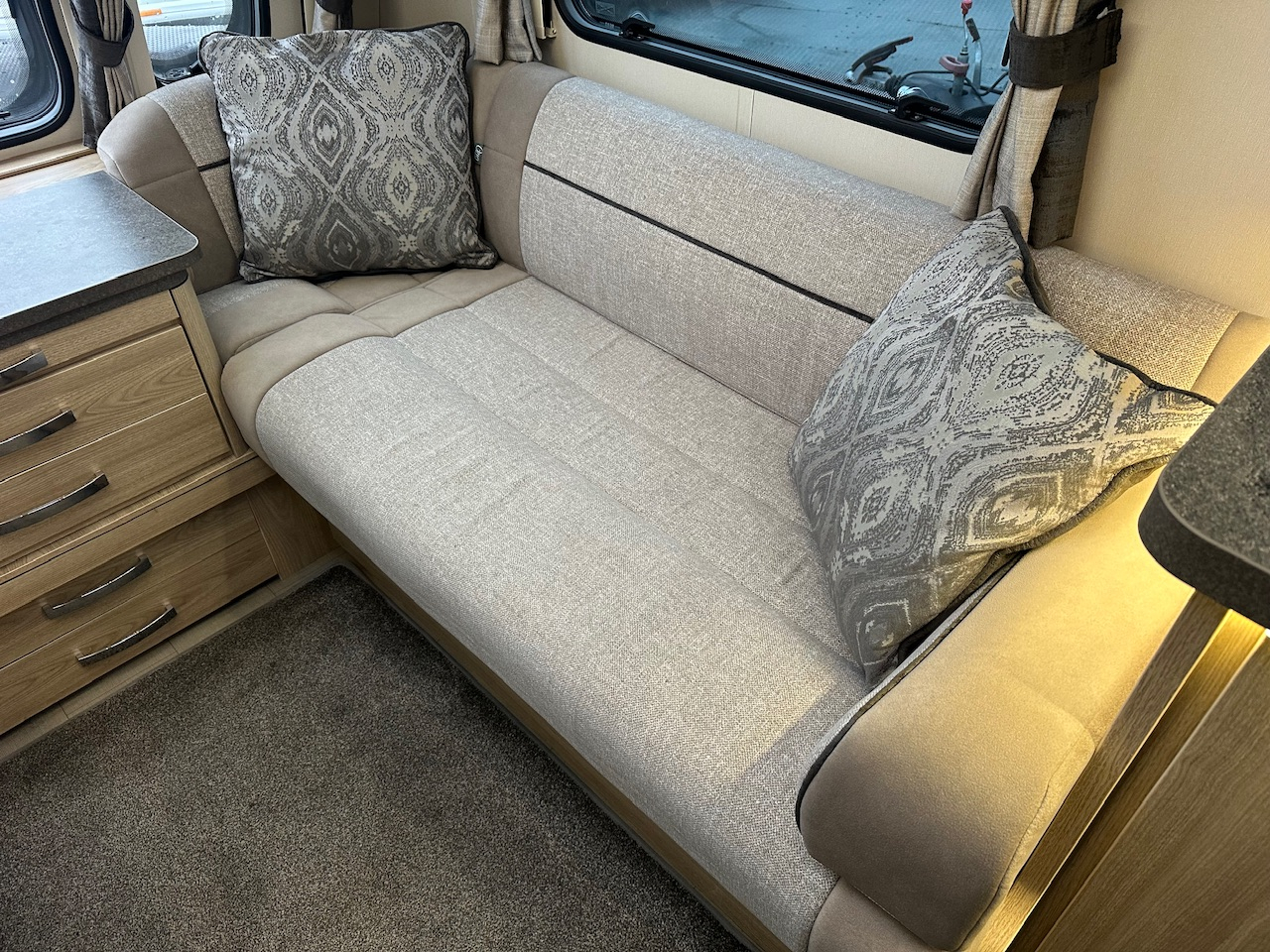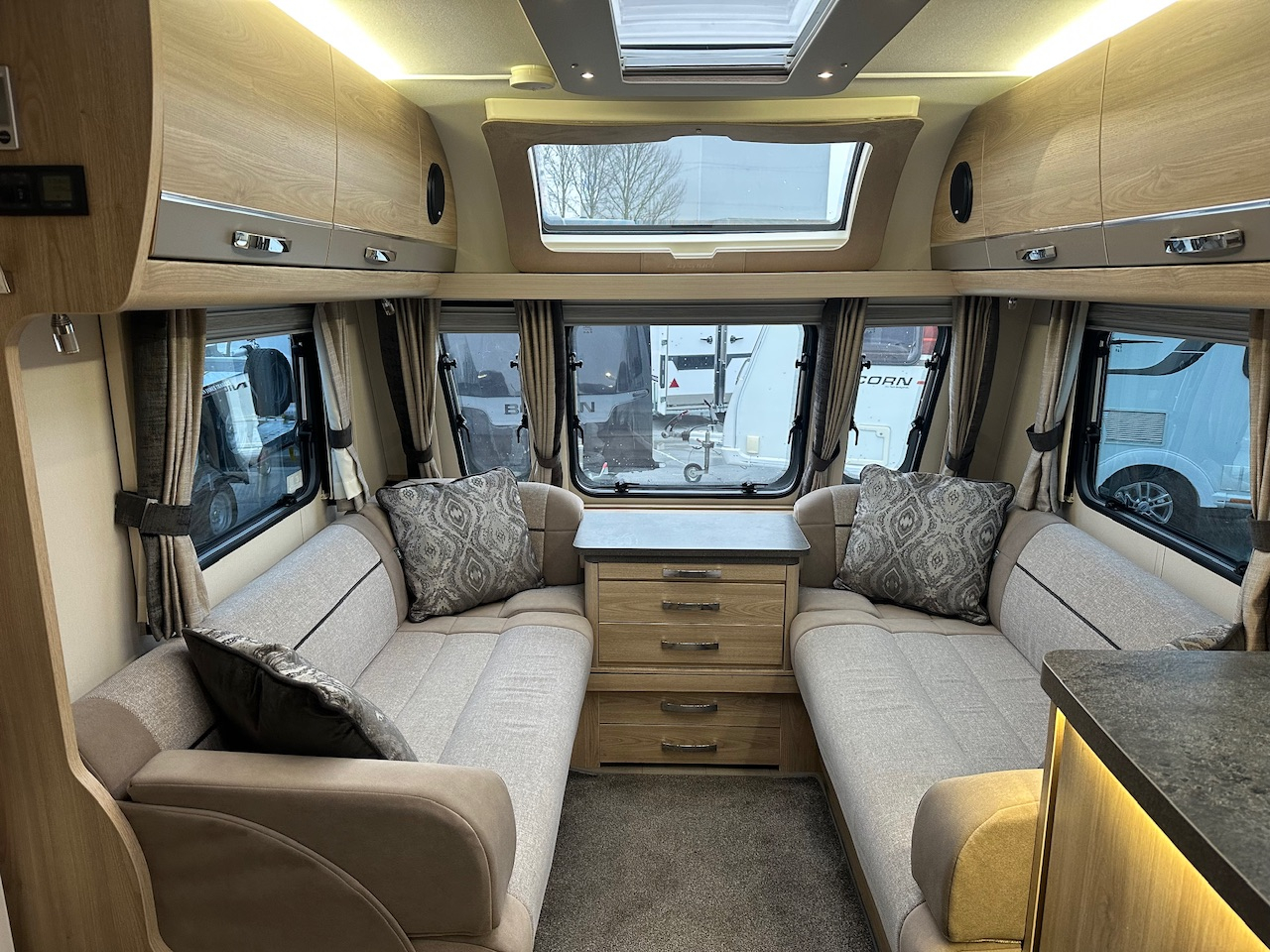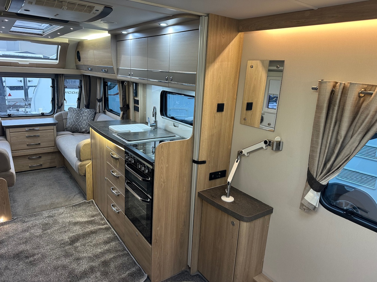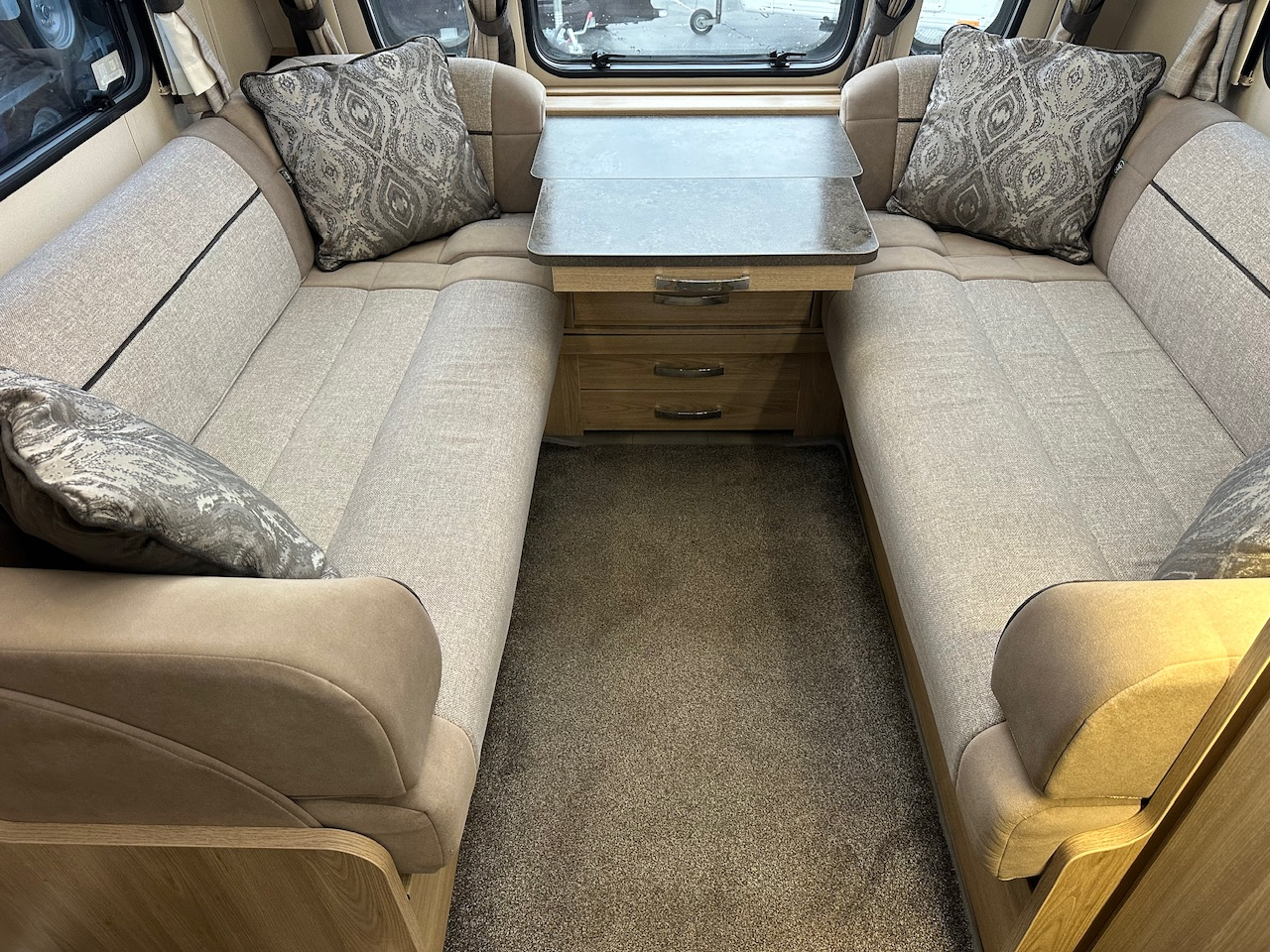 2019 Elddis Crusader Storm 4 Berth Double Axle Touring Caravan, Transverse Island Bed, End Washroom, Truma Air Conditioning, Alde Heating, Quad Motor Movers, Bike Rack Fitted, ATC, Radio, Gas Oven & Hob, Large Fridge, Microwave And Lots More. Very Clean And Tidy Example. Viewing Highly Recommended.