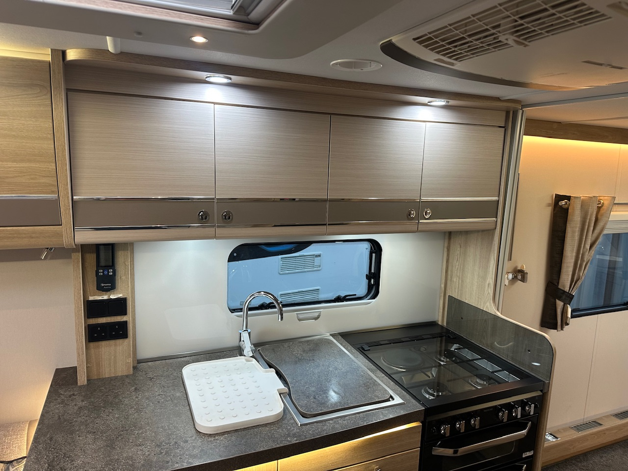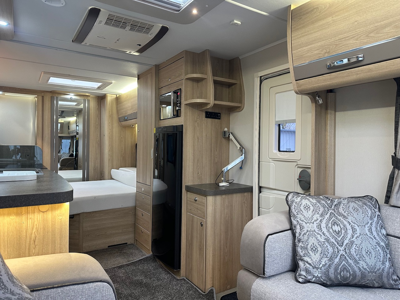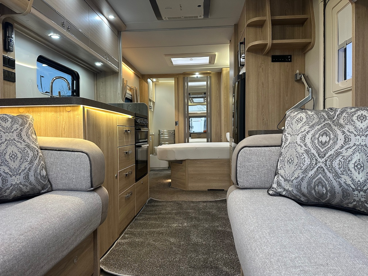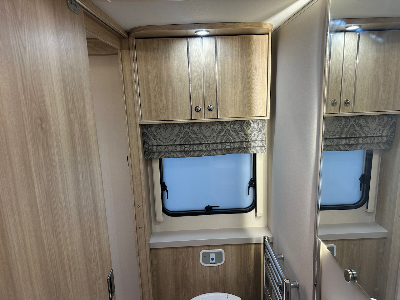 2019 Elddis Crusader Storm 4 Berth Double Axle Touring Caravan, Transverse Island Bed, End Washroom, Truma Air Conditioning, Alde Heating, Quad Motor Movers, Bike Rack Fitted, ATC, Radio, Gas Oven & Hob, Large Fridge, Microwave And Lots More. Very Clean And Tidy Example. Viewing Highly Recommended.