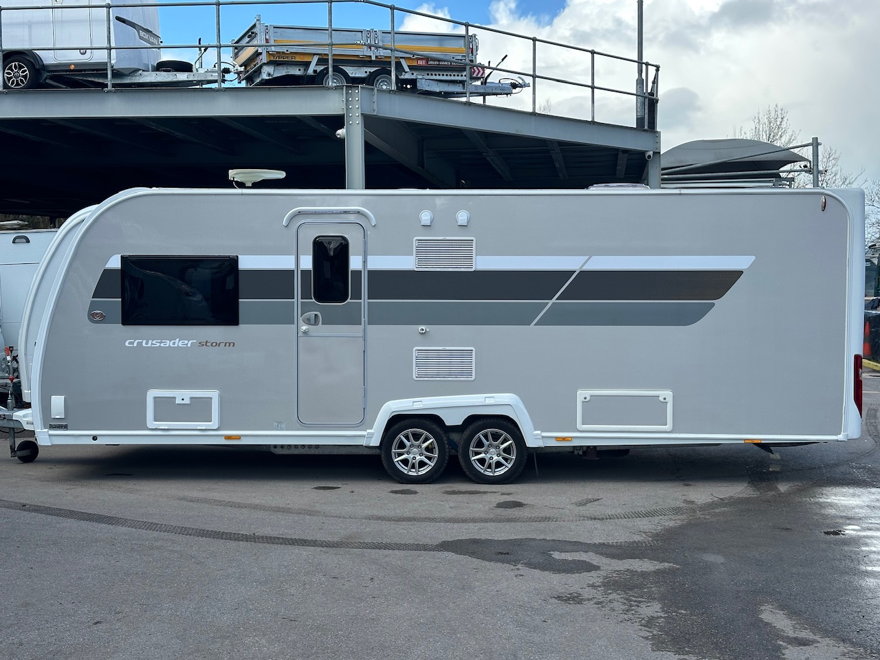 2018 Elddis Crusader Storm 4 Berth Double Axle Touring Caravan, Transverse Island Bed, End Washroom, Alde Heating & Hot Water, Onboard Water Tank, ATC Alko Trailer Control, Radio, Gas Oven & Hob, Large Fridge, Microwave And Lots More. Very Clean And Tidy Example. Viewing Highly Recommended.