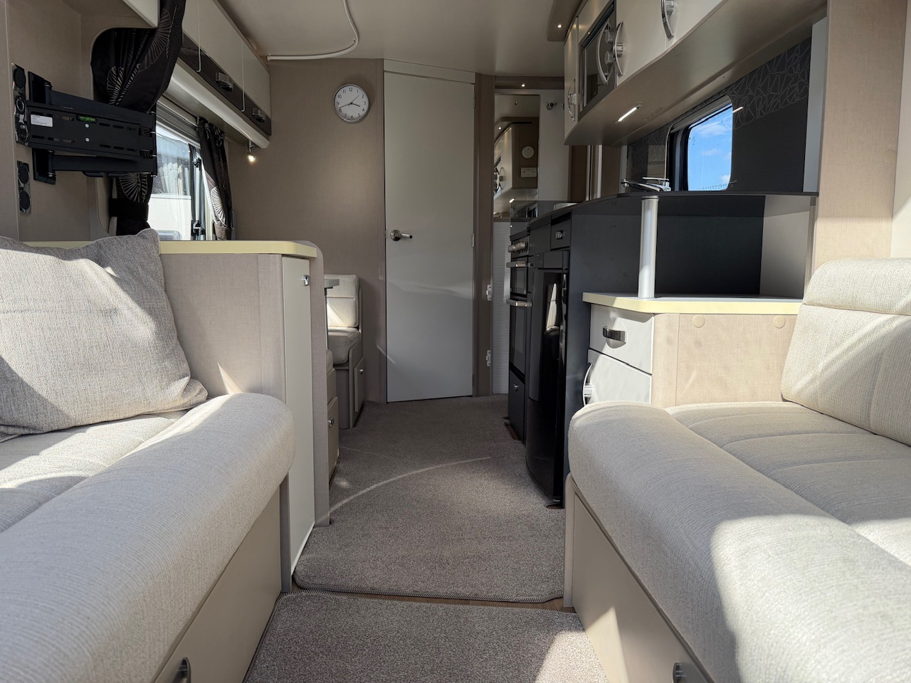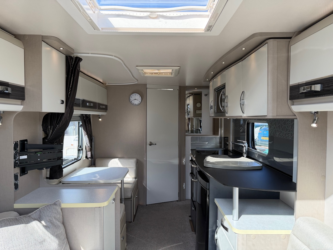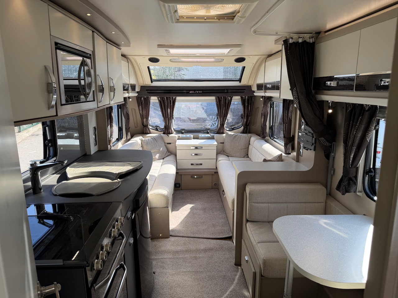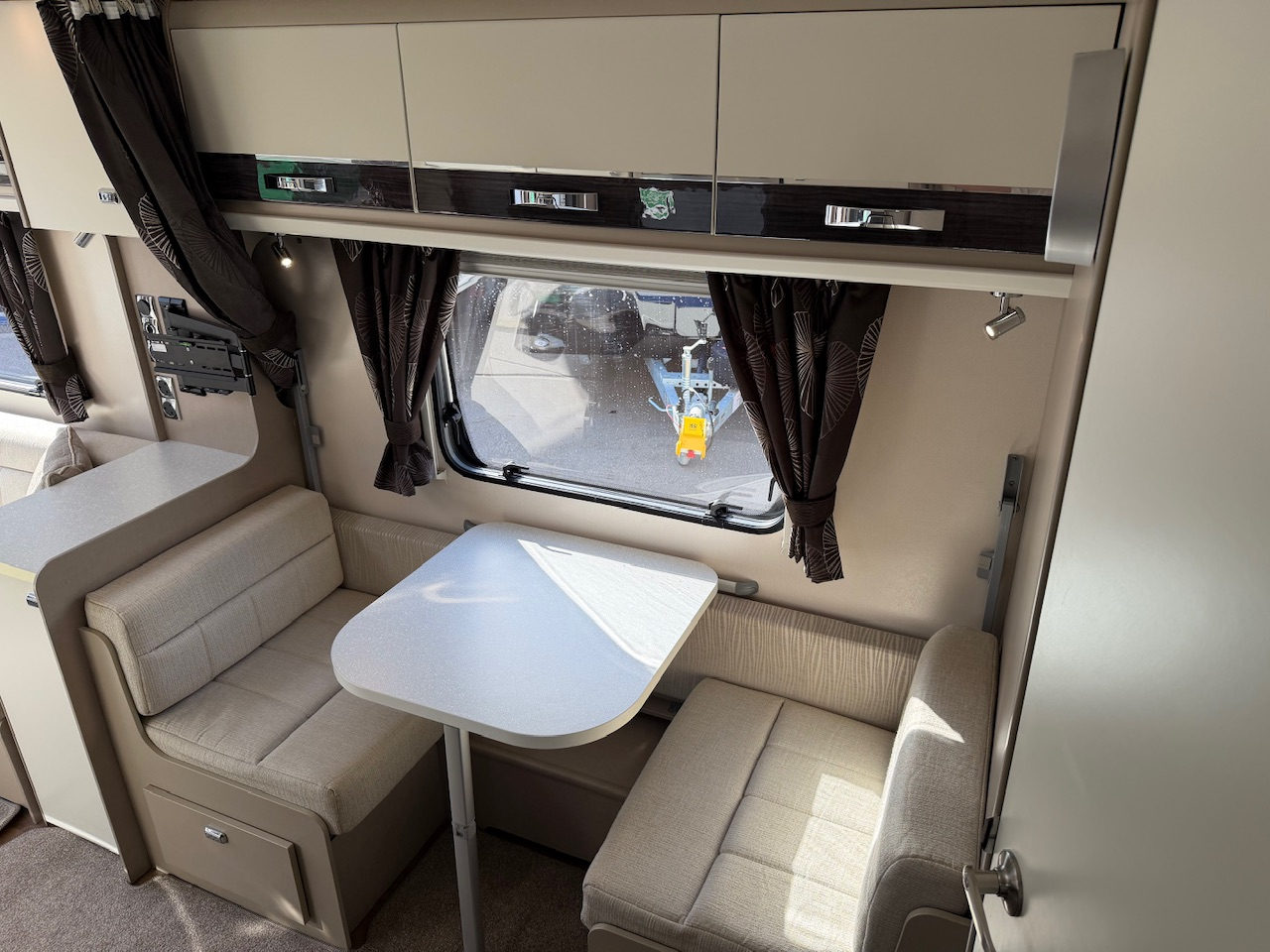 2016 Sterling Elite 530 4 Berth Touring Caravan, Dinette Conversion, Side Dinette, End Washroom, Alde Wet Central Heating, Solar Panel, Radio, Gas Oven & Hob, Large Fridge, Microwave, ATC Alko Trailer Control, Motor Mover, Hitch Lock, Alko Wheel Lock, 22” TV, Sound Bar, Child/Pet Gate, Water Barrel, Waste Water, Leisure Battery, Hook Up Lead, Gas Bottle, Step, A Frame Bike Mounted Bike Carrier, Air Arch Awning With Sides (Open Front) And Lots More. Very Clean And Tidy Example. Viewing Highly Recommended. Please Call