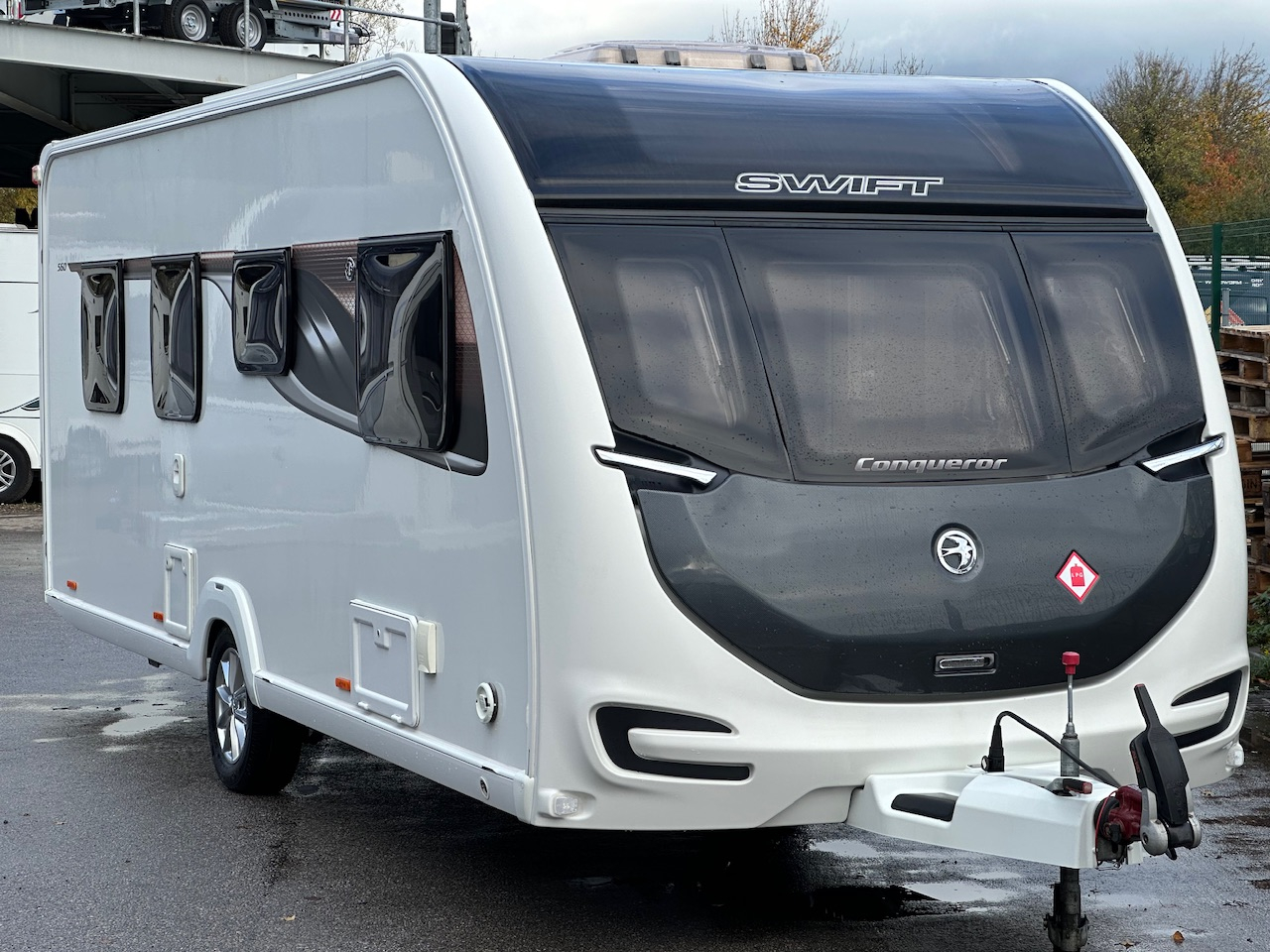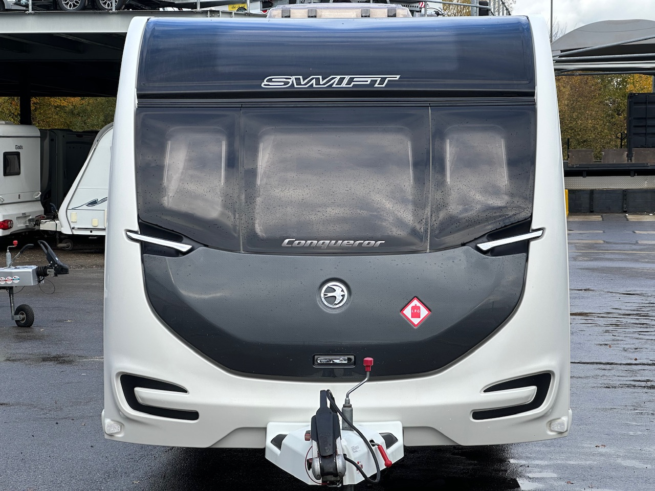 2018 Swift Conqueror 560 4 Berth Touring Caravan, End Bedroom With Fixed Island Bed, Walk Through Washroom, Alde Heating, ATC, Solar Panel, Radio, Gas Oven & Hob, Tall Fridge, Microwave And Lots More. Very Clean And Tidy Example. Viewing Highly Recommended. Please Call,